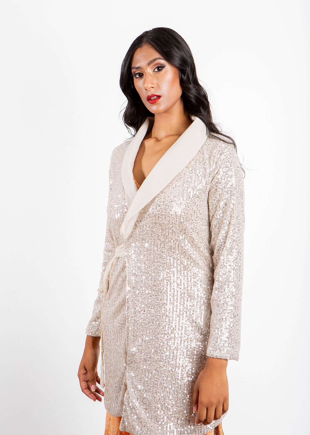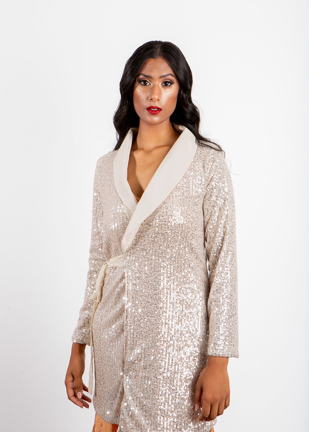 Elevate your evening wardrobe with the Eka Dress, a stunning sequin jacket dress designed to captivate. This piece combines the sleek structure of a tailored jacket with the dazzling allure of sequins, offering a sophisticated yet glamorous look. Perfect for formal events or upscale parties, the Eka Dress ensures you stand out with its refined silhouette and shimmering finish.
