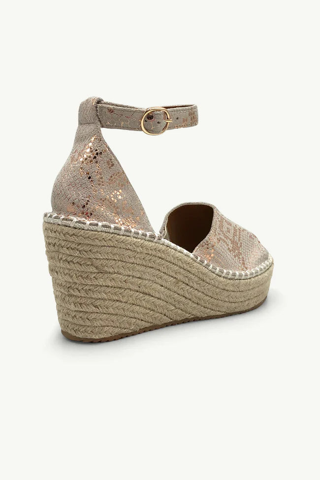 Step confidently with the Beckham espadrilles, featuring a classic espadrille sole that offers natural comfort and durability. The sophisticated snake print adds a bold, textured look, while the adjustable ankle buckle ensures a secure and personalized fit. Perfectly blending style and practicality, these shoes elevate any outfit with expert craftsmanship and timeless appeal.