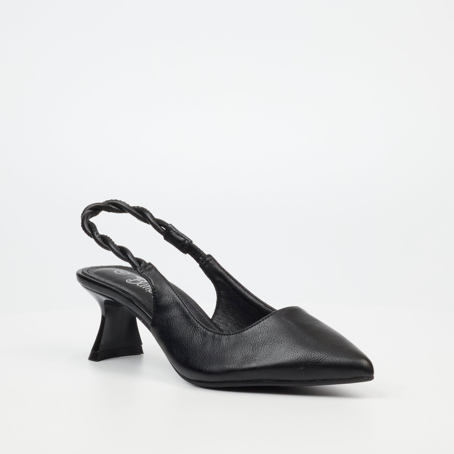 Chic and sophisticated, this elegant heel features a pointed toe for a sleek, refined look and a twisted ankle strap that adds a touch of modern flair. Designed with a thick short heel for stability and a comfort sock for extra cushioning, it perfectly balances style and comfort. Ideal for both day and evening wear, this versatile pair elevates any outfit with effortless grace.