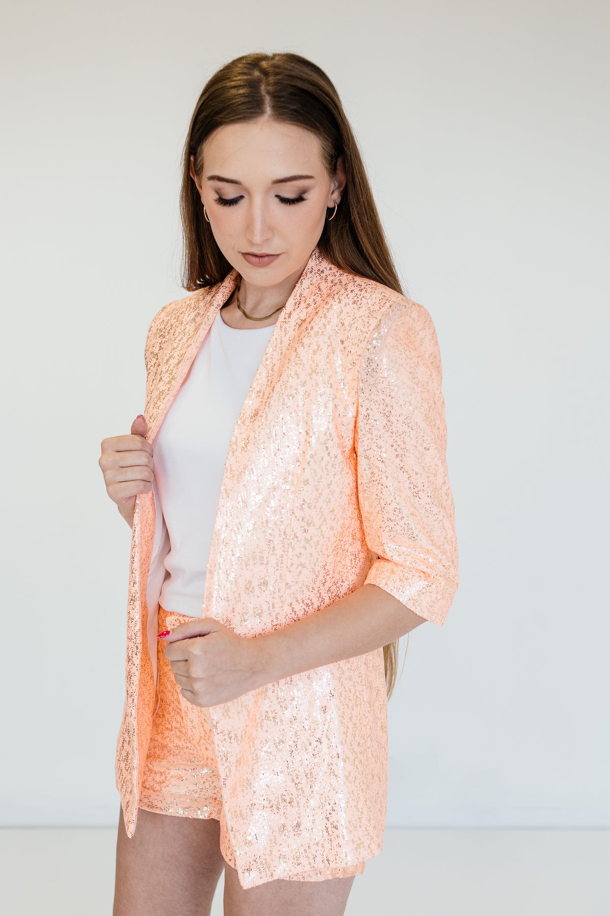 Pair with matching sequins shorts for a stunning ensemble. Dress it down with sneakers or elevate the look with high heels. Transform your everyday attire by wearing it with jeans and a t-shirt.