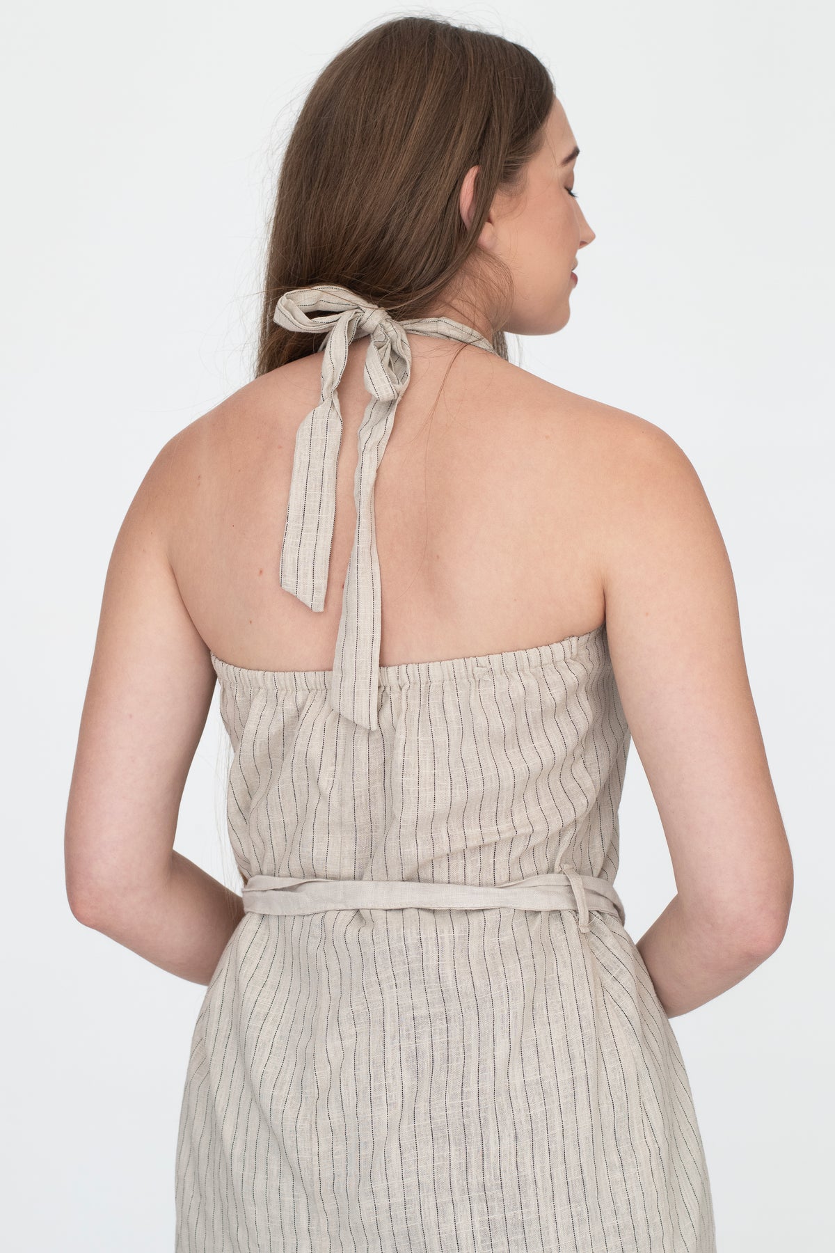 Turn heads in our backless halter neck dress , the perfect blend of relaxed sophistication and summer-ready style. Featuring a flattering halter neck design and a front button-down closure, this dress offers an elegant silhouette with a hint of vintage charm. The flowy cut provides ease and comfort, making it ideal for warm-weather outings or casual occasions.
