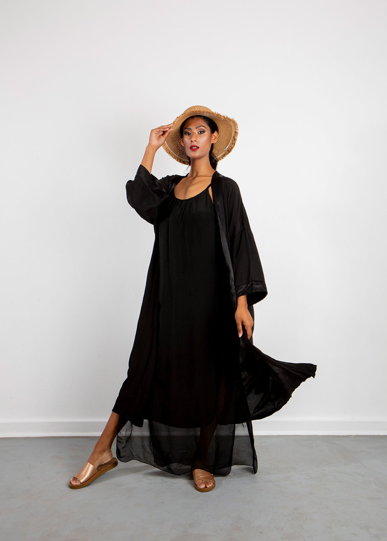 Add a touch of effortless sophistication to your wardrobe with this Tamil Kimono. Designed with a relaxed, open-front silhouette, this versatile piece drapes beautifully over any outfit.