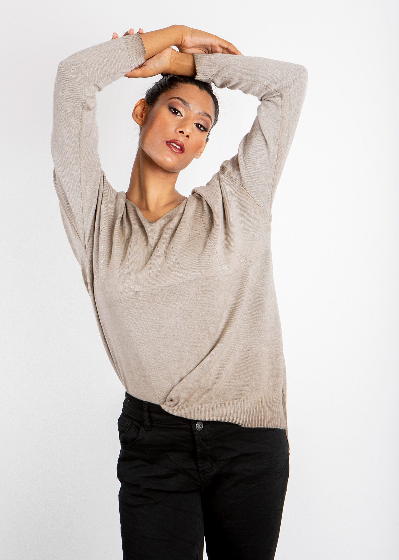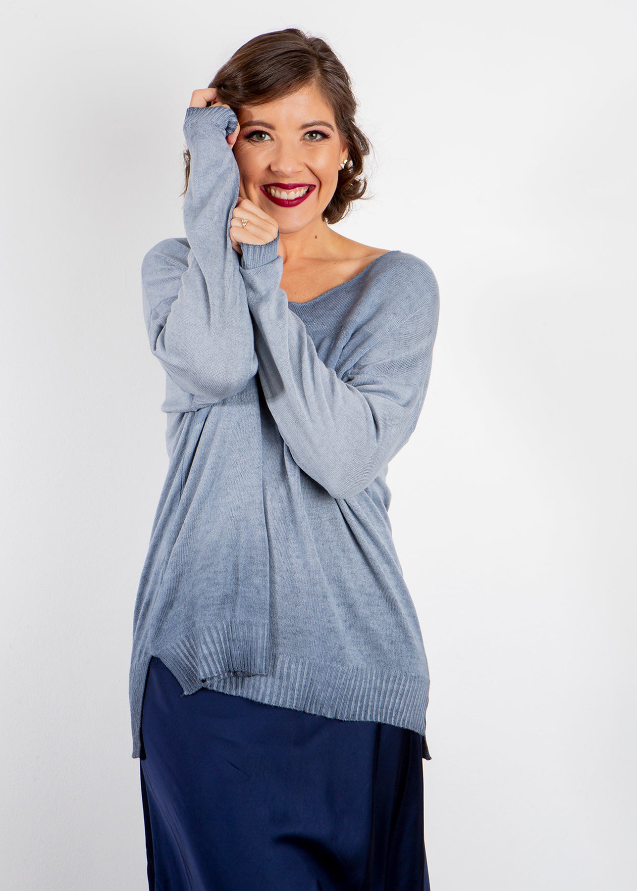 The Stee Jersey showcases a refined rounded V-neckline and elegant full-length sleeves, complemented by a lustrous finish on the bodice. This sophisticated design combines comfort with a polished look, making it an ideal choice for those seeking understated elegance in their wardrobe.